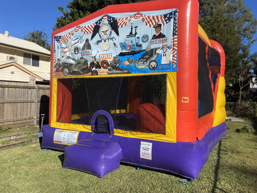 When you book with us, you get more than just the best Jumping Castle Hire US Military Combo 4.5 x 6 in Brisbane, Ipswich, Caboolture, Logan – you get peace of mind. Our prices include professional delivery, setup, and pack down, so you can focus on enjoying your event while we handle the rest. Our team is reliable, friendly, and committed to ensuring your jumping castle hire experience is smooth and stress-free.