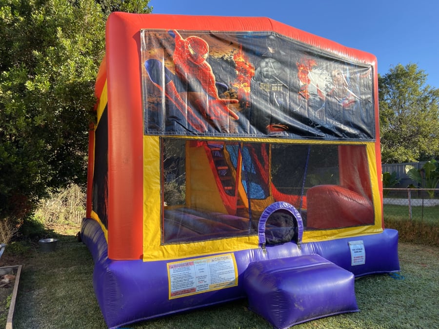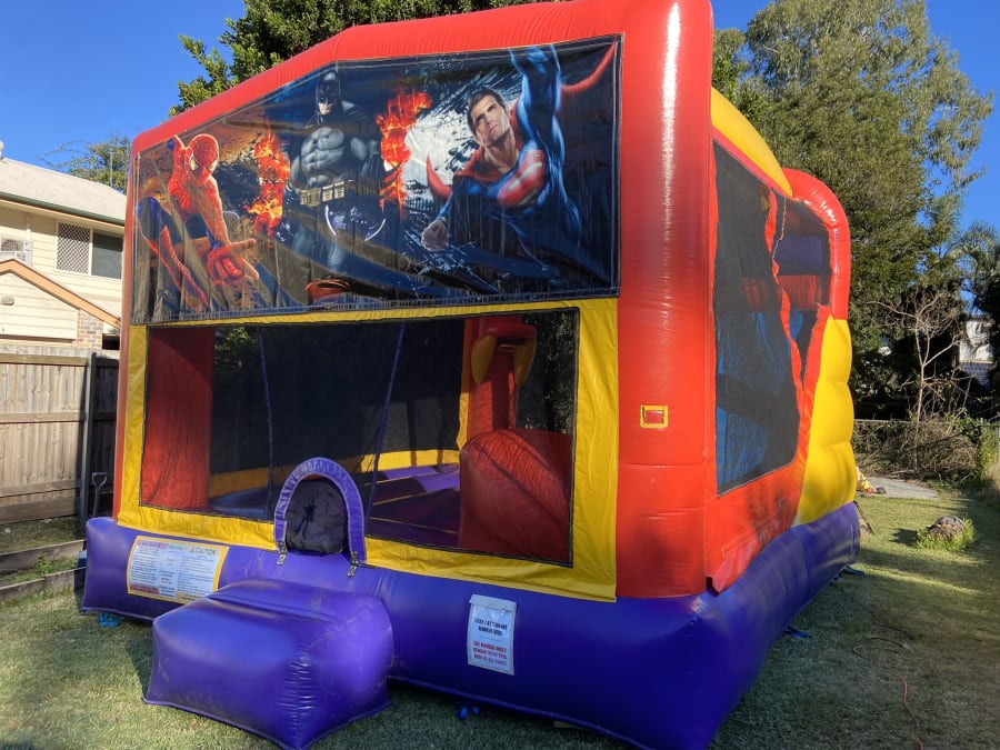 Make your next event truly spectacular with the Jumping Castle Hire Super Heroes Combo 4.5 x 6 in Brisbane, Ipswich, Caboolture, Logan. Reserve your date today and let your little heroes create memories that last a lifetime!