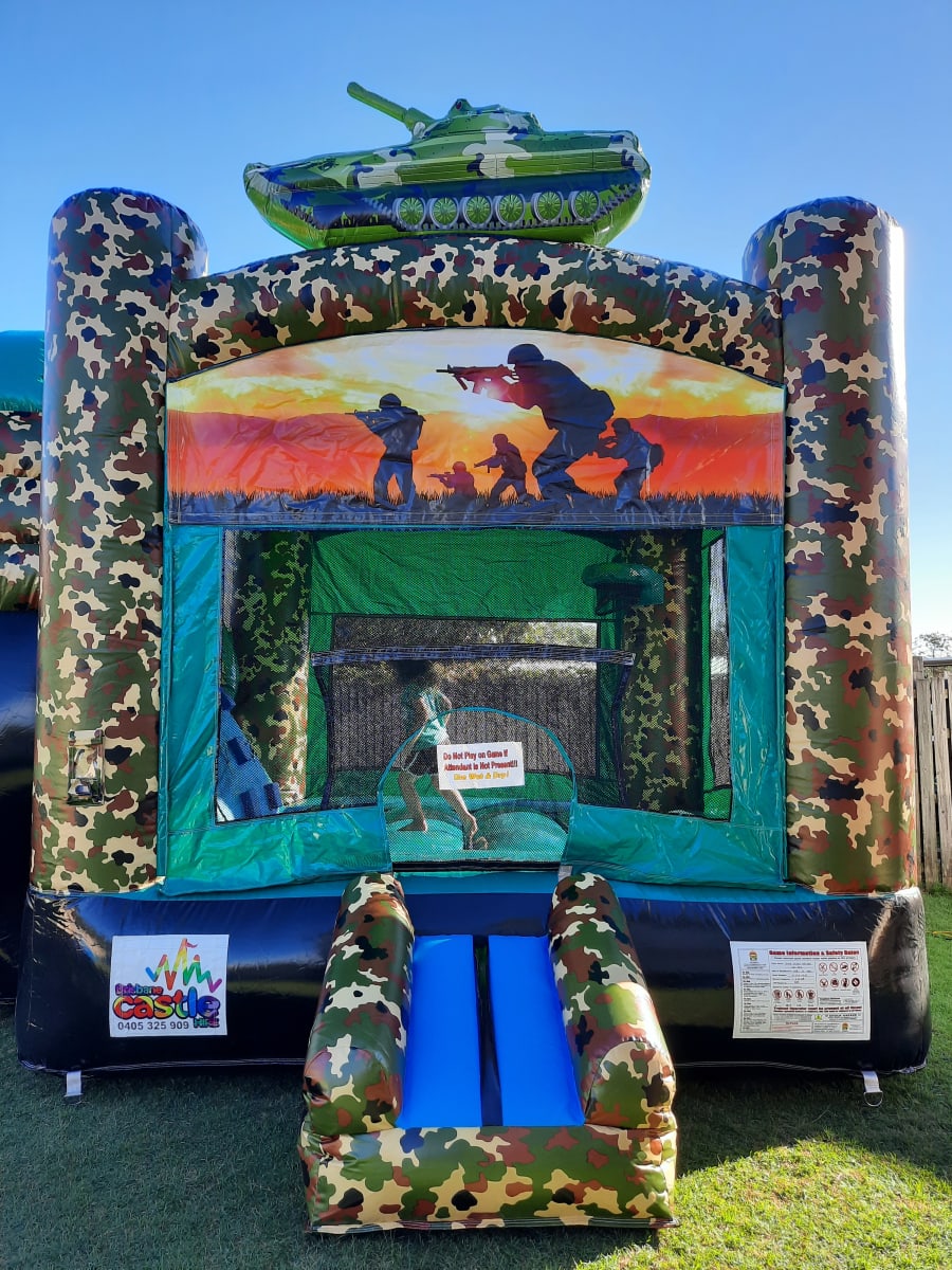 Make your next event a high-energy, action-packed adventure with our hire jumping castles Brisbane and Ipswich. Army Camo Combo in Brisbane and Ipswich. Let your little heroes make memories that will last a lifetime!